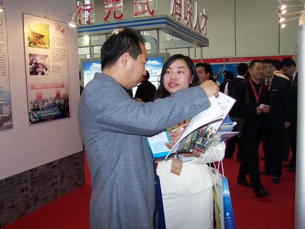 由中國人才交流協(xié)會、上海市人事局和浦東新區(qū)人民政府主辦的2007中國人才服務(wù)業(yè)博覽會于2007年11月15-16日在上海浦東展覽館舉行,中共中央政治局委員、上海市委書記俞正聲出席了開幕儀式并宣布開幕,中組部副部長、人事部部長尹蔚民,上海市委副書記、市長韓正到會致詞。眉州人才市場由分管領(lǐng)導(dǎo)親自帶隊參會,與多家國家級、省級人才市場親切交流,并達(dá)成一定的網(wǎng)上交流等合作意向。